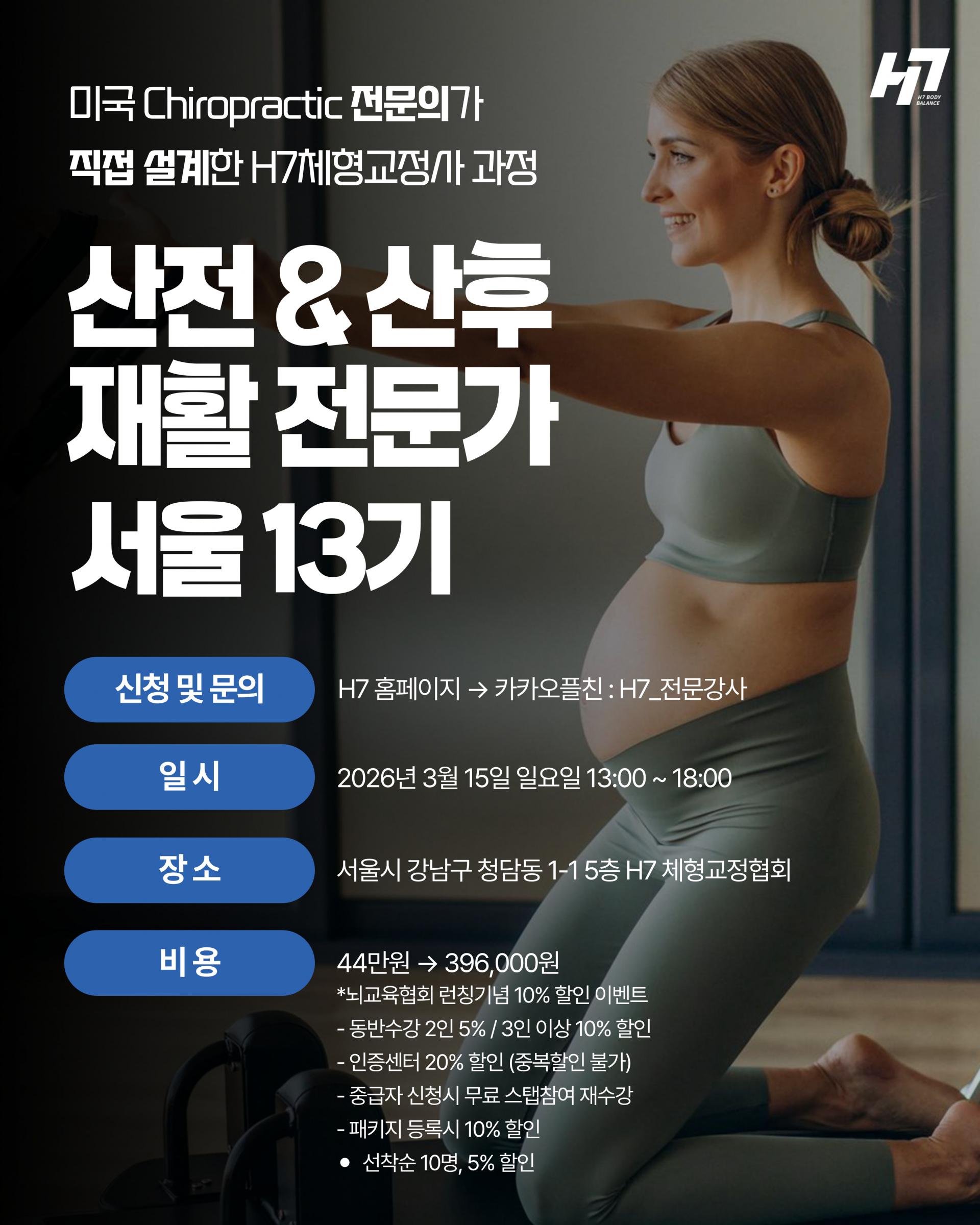 ✔인증센터 / H7 BODYCORRETOR 2급 강사 이상 20% 할인 (중복할인 불가)
